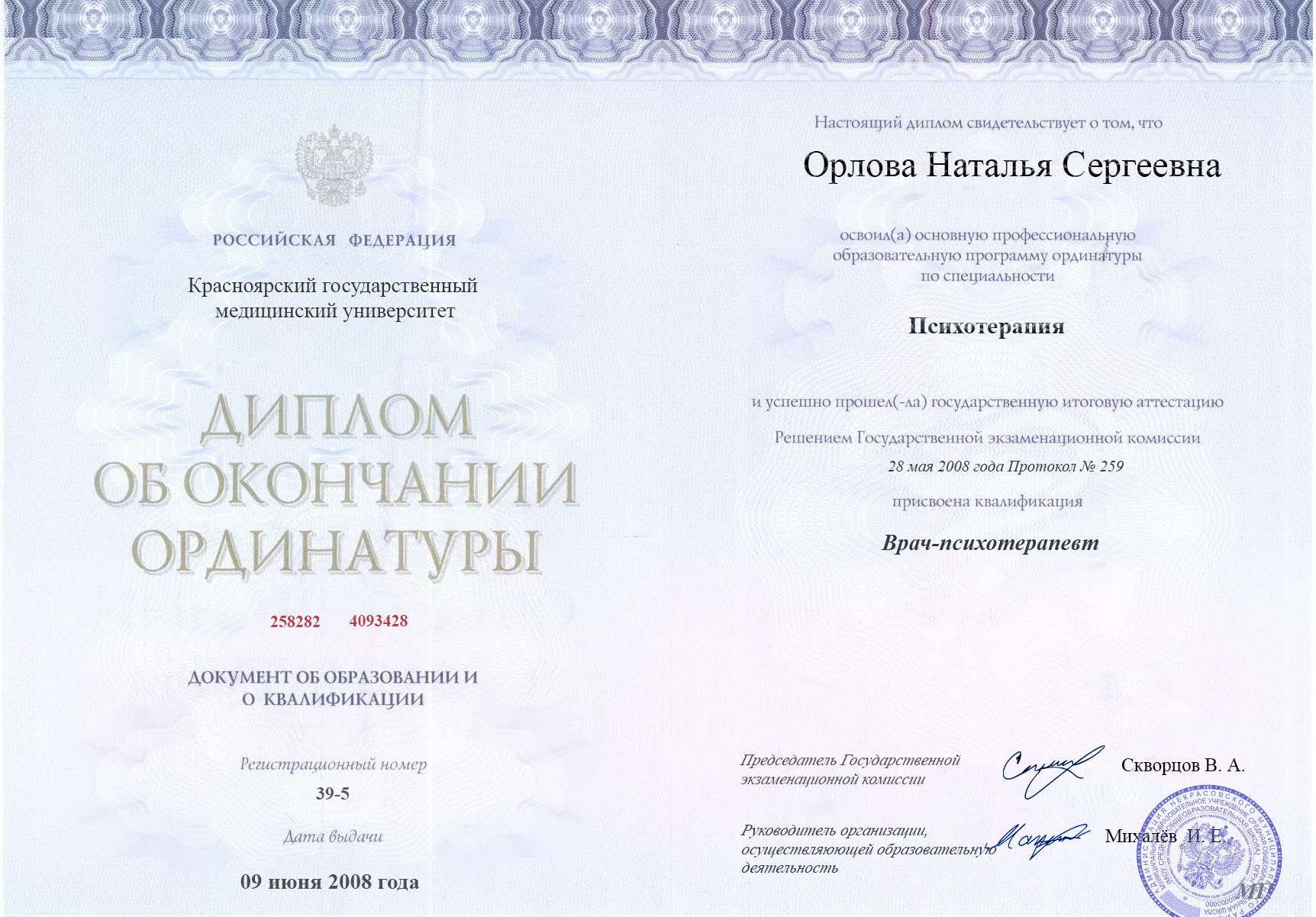 ВУЗ: Красноярский государственный медицинский университет, 2005 г.